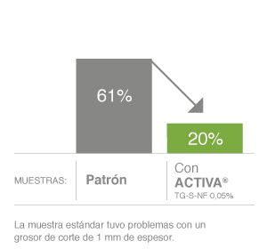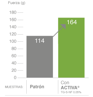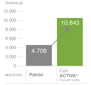 Los resultados del análisis de TPA (textura) evidencian que la muestra con ACTIVA® presentó mayor firmeza que la muestra estándar.