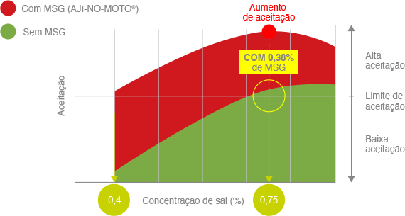 Ao adicionar MSG à sopa com a concentração de sal padrão, a aceitação